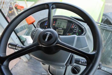A vezető párnázott foteljének rugózása viszont a testsúlyhoz állítható, pozícióját kellő határok között lehet változtatni, és mivel az alvázhoz képest külön rugózik az egész fülke, rázós úton is tűrhető a komfort. A volánt egy kis pedál megnyomásával oldva olyan szögbe húzzuk, ahogy tetszik, állítási tartománya megszégyeníti bármelyik autóét, a Mercedes S osztályt is beleértve. És természetesen vele együtt mozdul a műszeregység, tehát sohasem kerül a volánkarima takarásába – van ilyen az autódban? A hifi színvonala elmarad a luxuskocsikétól, de ide megfelel, akárcsak a digitális klíma. Amiben viszont bármely aszfaltszaggatót felülmúl a Claas Axion, az a körkilátás: ebben aztán semmi szükség parkolóradarra és panorámakamerára, mert üvegházból nézzük a világot.
