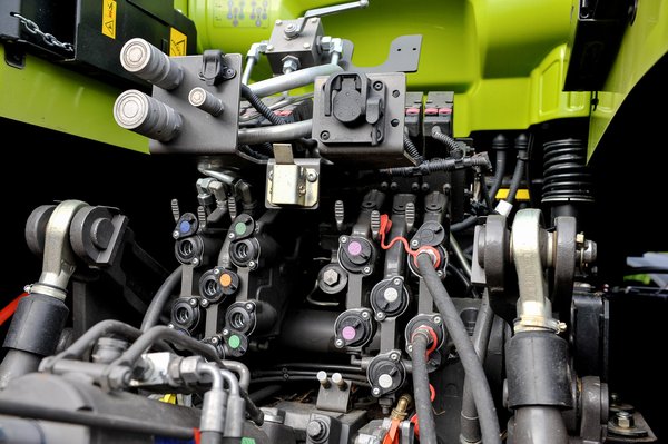 Még beszállás előtt álljunk meg egy részletnél: az eke hidraulikacsövekkel csatlakozik a traktorhoz, így lehet leengedni és felemelni, illetve átbillenteni, hogy amikor ide-oda haladunk a szántóföldön, a jobbos vagy a balos ekesor szántson, mindig egy irányban kiborított barázdát hagyva. A rendszerben óriási, 200 bar a nyomás, ebből arra gondolhatnánk, hogy nagy hókuszpókusz a csövek bekötése. Mégsem. Csak a gyorscsatlakozókat kell bedugni a tisztára törölt fészkekbe, és kész. Széthúzásukkor egyetlen csepp olaj sem hullik a földre. Egyszer kell megmutatni, aztán akárki képes rá, tisztább és egyszerűbb, mint megtankolni egy autót.
