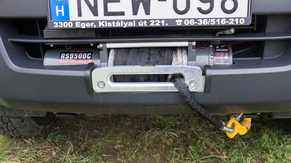 Mivel az autót flottapartnereknek is mutogatják, biztos úgy érezték, kicsit kevés lesz az alapcsomag, így érdekes extrákat kapott. Az egyik minden kemény (nek látszó) pickupos alapszettjében ott van: távirányítható, 4,3 tonna vonóerejű csörlő (felára nettó 325 ezer forint), ami a kocsi orrába rejtve várja a bevetést. Érdekessége, hogy nem hagyományos drótkötél, hanem jóval könnyebb kevlárkábel tekeredik a kábeldobra.