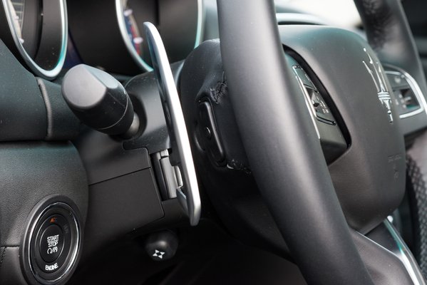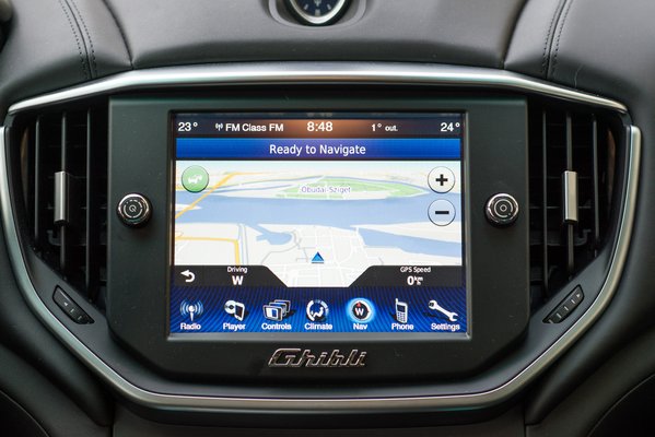 A váltó ugyanaz a nyolcfokozatú ZF, amit a BMW is használ az 5-ösben, ugyanazzal az idegesítő elektronikus kapcsolással: az automata karja valójában billenőkapcsoló, amit D-ből P állásba nem tökig előretolással juttatok el, hanem több billentéssel. Biztos meg lehet szokni, csak nem egy hét alatt, ameddig nálunk van egy-egy tesztautó. Első nap leparkoltam a Ghiblivel, beraktam P-be, aztán lehajoltam, hogy kivegyem a táskám az utasülés lábteréből. Amikor felegyenesedtem, rémülten láttam, hogy kábé öttel gurulok hátrafelé, de végül mindketten szerencsésen megúsztuk.
