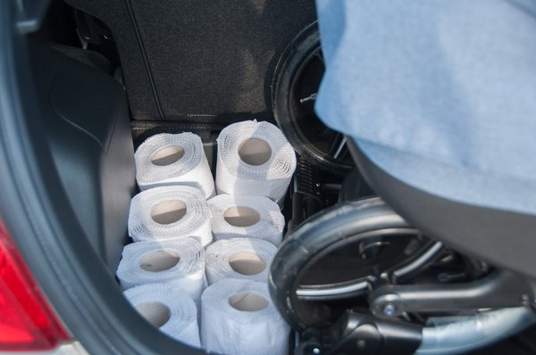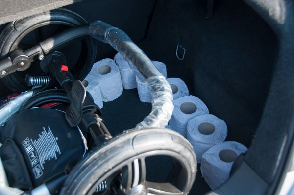 Ha alkalmanként maradt hely, akkor azt wc-papírral szemléltettük. A guriga nem bejegyzett SI-mértékegység, viszont a legtöbbször ugyanakkorák, és jó eséllyel mindenki látott már életében, így remek szemléltető eszköz. Nem tettünk minden autóba, csak akkor használtuk, ha maradt érdemi hely a csomagtartóban.