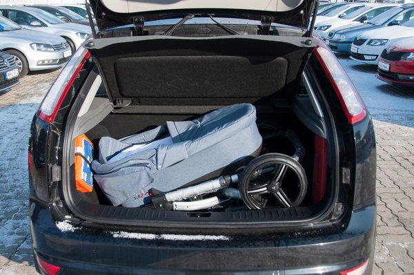 A C-Maxba könnyedén befér a keret, valamint a mózeskosár, és rátehetjük az esernyőst is. Ilyenkor még marad felette némi hely, de a csomagtér padlójára is pakolhatunk 2x3 gurigányi területre. A perem magassága mindössze 60 centiméter, ami további előny az emelgetésnél.