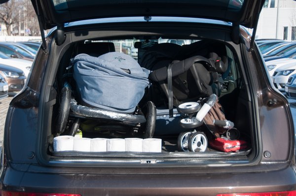 A kifutó Q7-es hamarosan népszerű lesz, hiszen kellően nagy dugong, van rajta a négy karika, és már 3,5 millió forint körül is hozzá lehet jutni. A járulékos költségeit most ne firtassuk, babakocsi-fronton a Q7 beváltja az összes hozzáfűzött reményt: befér a keret mindhárom bővítménye, ráadásul bátran mellédobhatjuk az esernyő babakocsit is. Néhány kivételtől eltekintve felesleges magunkkal vinni mind a három hordozót, de a csomagtartó méretét a legjobban az mutatja, hogy még így is marad hely hat guriga wc-papírnak. Egyetlen hátránya a viszonylag magas, 88 centis perem, ahova nehéz felrakni a nehezebb csomagokat.