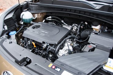 A kétféle benzines közül a szívó állt közelebb a szívemhez. Meglepően sportosra hangolták, hogy meglegyen a 132 lóerő 6300-as fordulaton, de alacsony fordulaton sem vészesen gyenge. Persze, pörgetni kell, ha haladni akarunk, de szeret is pörögni, és nem csak a dízeleknél, de a turbós benzinesnél is szebben szól. Ha hihetünk a kijelzőnek, 8 liter körül elmegy, ha nem nyígatjuk nagyon, ami nem csak a dízelek jellemzően 7 liter körüli fogyasztásához mérve zseniális érték. Alapmotornak kiváló, rövid utakra, városba tökéletes, autópályán viszont ez is ugyanott, 130 körül búg, mint a kisdízel. Franc a koreaiak áttételezésébe, ha nem lenne a búgás, brummogás, mindenre elég lenne a két legkisebb motor.