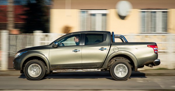 A Mitsubishi bevallottan életstílus-irányba vitte az L200-at, legalábbis ami az utasteret illeti: extrémsportolók, illetve mindenféle jómódú, motorcsónakot vontató, szörföket, vagy sárkányrepülőt a platóra hajigáló illetők. Ha már ilyen jól be lehetett rakni a gyerekülést, családi autóként is kipróbáltam az L200-at. Utazni teljesen jó. Viszont egy hátsó doboz elrontja ezt a vagány pickupságot, anélkül meg nézegeti az ember az eget, hogy a laptoptáska, meg a fotóscucc vajon megkapja-e az esőt. 6-os fokozatban 90-es tempóban forog a motor 1500-at, nagyjából itt a leghalkabb az utazás, mert a motor már nem szól, a szél pedig még nem. 100-ig tart a kegyelmi állapot, 110-nél kezdődik a kegyetlen szélzaj birodalma.