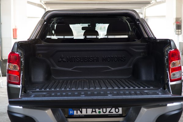 A motorja új, 2,4-es turbódízel 154 vagy 181 lóval, melynek neve MIVEC 4N15. Mitsubishi Innovative Valve timing Electronic Control, ami egyrészt vicces, másrészt az amerikai autógyártás fénykora óta tudjuk, hogy a fontosabb alkatrészeket el kell nevezni. Az új L200 10,4 másodperces százra gyorsulása elismerésre méltó. Meg lehet szokni, hogy a turbó minden gázadásra úgy fütyül, mintha száz méternyire egy mentő közeledne, de azért nem ez a hangszigetelés netovábbja. A vibrációja több mint oké, négyhengeres dízel létére alig érezni, de a hang sajnos durván átjön. El lehet nyomni a rádióval, de ha az autót munkahelyként fogjuk fel, a folyamatos, kellemetlen berregés nem a kellemes munkakörnyezet netovábbja. Van a Mitsubishi gyári mikroszájtján egy szép dolgozat, milyen műszaki megoldásoknak köszönhetően lett az új L200 motorja ennyire smooth and quiet, nem is kételkedek a mérnöki megoldások zsenialitásában, mert ez a hang valószínűleg a hangszigetelő részleg szabotázsakciója. Pedig ez a motor a pickup-mezőnyben tényleg mérföldkő.