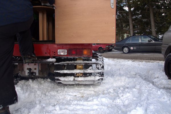 Ezzel együtt Botond az egész gépet áttrélerezte Nagyorosziba, ott rakták rendbe az elektromos rendszerét és lényegében újjápítették a felépítményt, így megőrizte eredeti, dobozos formáját. Nem egy Mazda-féle Kodo, fény-árnyék átmenet is csak annyi van rajta, mint Kojak tarkóján, de a maga funkcionalitásában, csapott szélvédőjével szinte sportos és kompakt kis gép: a havas lejtők MX-5-ös Mazdája. Szegecselt lemezbódé, Škoda fényszórók és két kiegészítő fényszóró a tetőn. Nincs túltolva a giccs, nincs menő matricázás rajta, a hegyek között a feltűnő, piros színnél nincs jobb, ez is mutatja, hogy ez alapvetően megmaradt munkagépnek, nem menőzni akarnak vele. A teljes felújítás 4000 eurót dobott még rá a vételárra, cserébe képessé vált egy kisebb csoport (család, baráti társaság) komfortos szállítására olyan helyekre, ahová másképpen nem igen jutottak volna el. A Webasto kiegészítő fűtés tökéletesen kifűti a dupla paddal és asztallal ellátott utasteret és a kabint is.