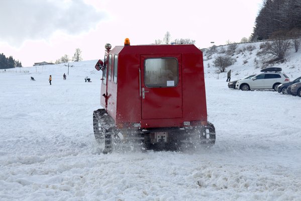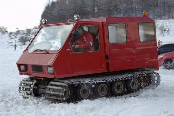 Az első két percben az autóhoz szokott ember rémülten markolássza a kormány helyét, aztán hamar megtanul ülni a ratrakban. Előredőlt felsőtesttel markolom a két kart, a gázt a pedállal adom, ha teljesen hátradőlnék és automatikusan húznám a karokat magammal, akkor szinte azonnal megállunk, ha elengedem a gázt, azonnal megállunk. Magyarán megállni sokkal könnyebb a Lavinával, mint mozogni.