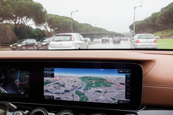 Gyakorlati előnye is van a megoldásnak, számos. Például mindenki magának paraméterezhet olyan műszerfalat, amin a számára legfontosabb dolgok az orra előtt laknak, a kevésbé lényegesek középen, a lényegtelenek pedig apró méretben, elszórva. Lehet akár középen is a sebességmérő és a fordulatszámmérő, s a kormány mögött a navigáció, például. Mellesleg kell megjegyeznem, hogy mostantól végre az E osztály jegyezhető extrái között is szerepel szélvédőre vetített kijelző, azaz head-up display.