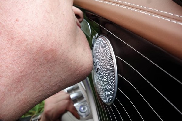 Ha unatkozik, játszhat a 64 színre állítható belső díszcsík-világítással, gyönyörködhet a navi széles vásznában, elmerülhet a csillióhangszórós Burmester hifi hanghullámainak habjaiban (az ajtó fölső részén, a tükrök tövében levő magasak a rendszer kikapcsolása után forogva, laposra tekerednek a helyükre, micsoda parasztvakítás te jó ég), élvezni a hőt (vagy hideget) a nem sugárban fújó, hanem csak lehelve terítő szellőzőrendszerből.