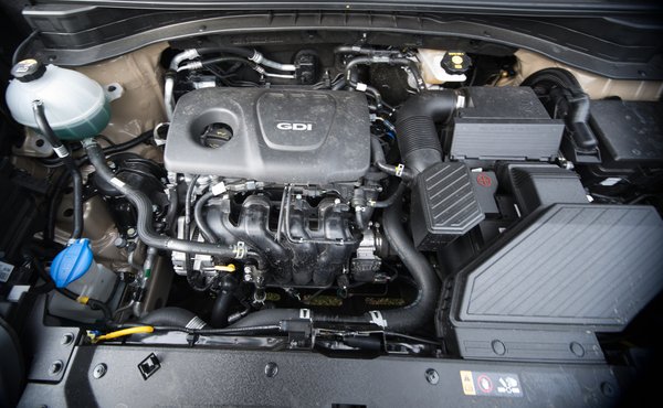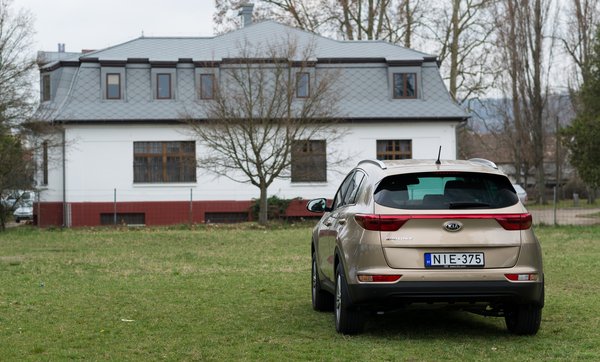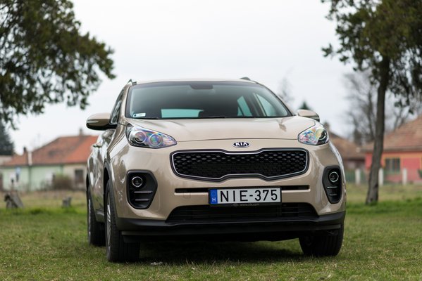 És épp ezzel az 1,6-os szívó benzinessel, ami elsőre nem is biztos, hogy megtalálunk az irdatlan motorházban, ahová szerintem még a Kia új fejlesztésű ötliteres V8-asa is beférne. Szerencsétlen kis GDI-feliratos pöcsköszörű keresztben, de éppenséggel hosszában is behajíthatnák. Optikailag tényleg csúnya ekkora motor ekkora autóban, más baj nincs vele. Az alapjárat például olyan sima, hogy először azt hittem, leállította a start/stop rendszer. De nem, mert olyan nem volt a tesztautóban; egyszerűen olyan simán jár, és olyan halk, mintha ott sem lenne. A gyári adat 36 dB, ami az emberi fülnek annyi, mint semmi. De később is alig halljuk, döbbenetes. Volt a szerkesztőségben, aki szerint gyenge a Sportage-hez, szerintem nem.