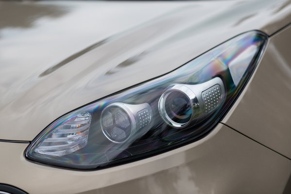 Hogy az oldalán mit lehetne kezdeni a hangárajtónyi lemezfelületekkel, arra szerintem a Pininfarina sem tudna mit kitalálni. Ördögfej-tetoválás? Kilincspiercing? Befuttatjuk vadszőlővel? Domborítgatták erre-arra, egyébként szépen, a hasaalja-szalonnából meg lecsaltak egy jó tíz centis sávot a matt fekete festék bőséges felhasználásával. Mindhiába: a mai, ütközésvédelmi tervezésből fakadó kis oldalablakok ezt eredményezik, a végtelenbe nyúló oldallemezeket. Még azt is el tudom képzelni, hogy a fura első lámpák egyszerű figyelemelterelés. Tényleg nem az igazi a dizájn. Az orra meg ugye gyalogosvédemileg lett ilyen magas, hát így jártunk. Én vagyok Peter Schreyer munkásságának legnagyobb dél-újpesti rajongója, de ez most nem adta ki; mintha helyette Gyárfás Tamás kipróbált grafikusa végezte volna az utolsó simításokat.