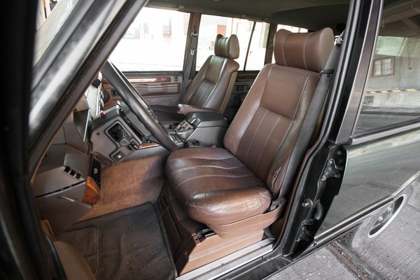 Ez egy 1993-as modell, tehát jó késői, akkor már csak három évig gyártottak ilyen autót. A kétféle kaszni közül az ötajtós, ráadásul egy zaftosan körbelocsolt darab, eleve a hosszú, LSE Vogue-kivitel, a világtörténelem legjópofább SUV-kerekeivel (igaz, erre ötküllősek lennének valók), bőrökkel, villanyablakokkal, fabetétekkel, motoros ülésekkel, klímaberendezéssel, automataváltóval, szintszabályzós légrugóval, villamosan állítható kormánnyal (csak ki-be), s valamennyi közül a legerősebb, V8-as, 4,2 literes, 203 lóerős, befecskendezős blokkal. 1993-ban egy ilyen listától alaposan ájuldozni illett.