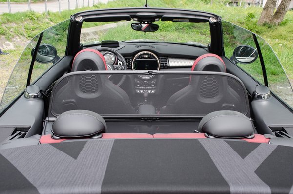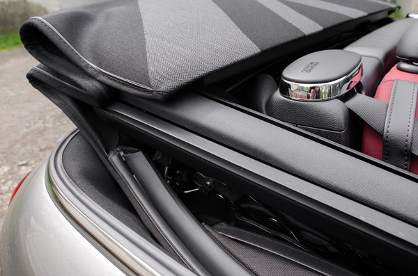 És a lényeg, ha már kabrió: a teljesen újragondolt tetőmechanikának 15 másodperc kell az egyik végállapotból a másikba. Az egész továbbra is full automata, egy gombot nyomva tartva nyílik vagy csukódik a vászontető. 30 km/óráig lehet menet közben is, de a gyakorlott kabriósok már tudják, hogy ez inkább egy félreállós művelet. Ahogy az előzőnél, itt is van egy köztes állapot, amikor a mechanika már bekapaszkodik a két A oszlopba, de a vászon még negyven centire nyitva marad. Hogy a számláló így is számol-e, meg se néztük, de kabriólaikusként az UV sújtotta kabriószezonban ez tűnik a legbarátságosabb felhasználási módnak. Hiába csak egy napfénytetős üzem, a miniség nem csorbul.