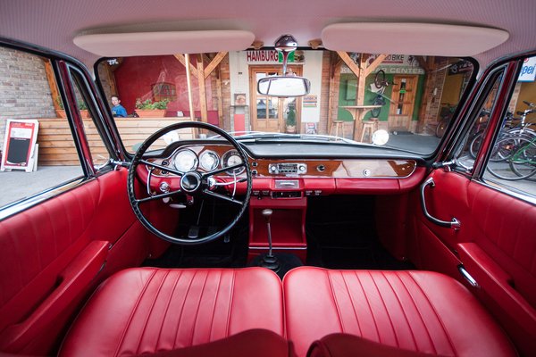 Lehet még rajta legelészni bőven. A teljes ajtónyílást krómozott formalemezekkel bélelték ki – nehogy már a csúnya, fényezett felületeket kelljen nézni, s mellesleg legyen mit takarítani is a garázsmesternek... A műszerek grafikája még igazi, régi németes, bauhausos – kapunk egy 220-ig skálázott sebességmérőt napi számlálóval (a valós végsebesség pont 200 km/h), egy 5800-tól pirosodó, kisebb méretű fordulatszámmérőt, valamint egy súlyosan kombinált jobb oldali műszert, amely egyszerre fungál időóraként, üzemanyagszint-mérőként, vízhőfok-mérőként, olajnyomásmérőként.