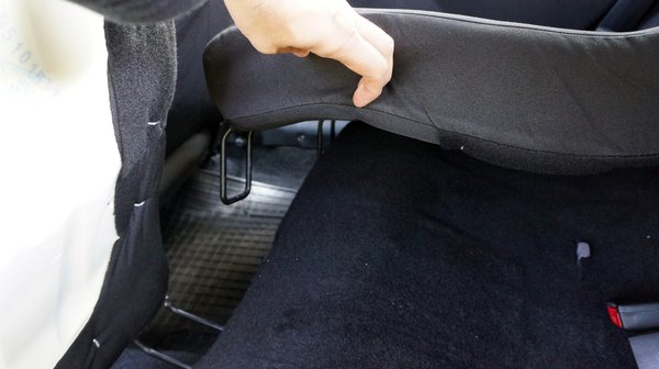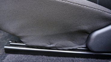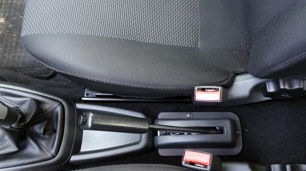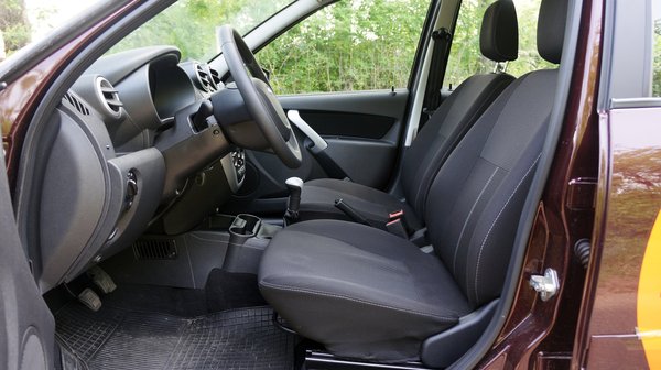Az ülés, hát... az van. Létezésének elsődleges szempontjaként nem azt szabták meg, hogy bármilyen módon kényelmes, ergonomikus vagy állítható legyen, hanem hogy ne a padlón ülve vezessük az autót. A magassága fix, a biztonsági övé is (melyen hiába kerestük, nem találtuk a pirotechnikai övfeszítőt), előre-hátra tudjuk állítani, közben a lelógó üléshuzat tisztán tartja az üléssínt. Ülni benne egyszerűen olyan rossz, hogy elgondolkodunk a térdeplésen, úgy viszont nem lehet kezelni a szűk helyre zsúfolt (a matuzsálemi padlólemez átka) pedálokat. A fejtámla viccesen kicsi, egy órányi út után már zsibbad a combunk a rövid, de legalább felfelé hajló ülőlaptól, a seggünk pedig felveszi a rés alakját a háttámla alatt.