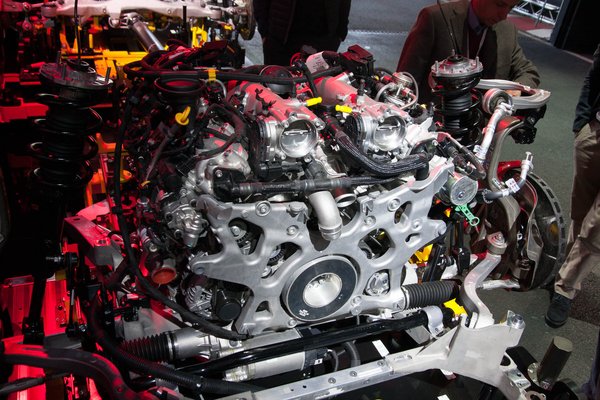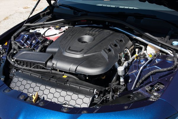 A két polgári motor közül az egyik egy vadonatúj benzines, négyhengeres, kettős megfúvású turbóval töltött, elektromos mozgatású szelepes, alublokkos és -hengerfejes benzines, s kizárólag a nyolcfokozatú ZF-automatával rendelhető, kézi váltós nem lesz belőle. A teljesítmény 200 lóerő, a legnagyobb forgatónyomaték 330 Nm 1750-es percenkénti fordulat mellett – épp elég az 1,4 tonna alatti, tehát egyáltalán nem nehéz autóhoz.