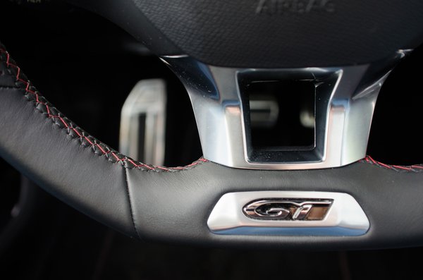 Egy 4-5 napos teszt kevés az összeszokáshoz, így félve írom le, de a klímára igazán szánhattak volna plusz három fizikai gombot a középkonzolon. Nincs baj a tablet tapogatásával sem, főleg hogy aránylag gyors, érzékeny rendszert sikerült ráhúzni. A kényszeres klímaállítgatás viszont kifejezetten vezetés közbeni elfoglaltság, és sokkal egyszerűbb tapogatható gombbal, mint egy hideg üveglap fogdosásával. A rádiózás is ilyen, de arra ott a gomb a kormányon is. A fix kijelző amúgy nem fáj, a GT-ben ráadásul van egy vörös folt az alján, ami megy a vörös varráshoz. Ez a szín lett a GT-ség egyik védjegye, ugyanebben a vörösben úszik a megcserélt műszeregység is sportmódban.