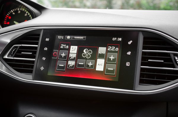 Odabent jobban működik a GT-ség is. Az i-Cockpittel eleve nagyon húzott a Peugeot. Különösen azzal, hogy minden gyakran használt műszeregységet felpakoltak a műszerfal tetejére. Érthetetlen, hogyan adja ki sokaknál a logika, hogy beteszik az elakadásjelzőt szem elé, miközben mondjuk a klímavezérlőt, amit egységnyi idő alatt legkevesebb kétszázszor többet használ az ember, a váltókar mögé. A 308-ban ilyen bukfenc nincs, bár a megoldáson ők sem gondolkodtak sokat: klímától rádióig mindent bepakoltak a 9,7 colos központi kijelzőbe.