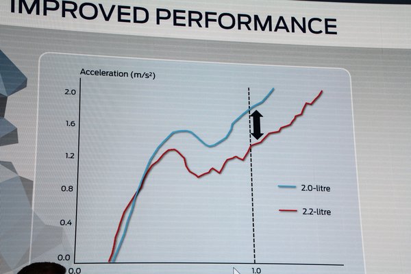 Érezték ezt a gyáriak is, a prezentációban külön kitértek az ilyen helyzetekre, és csodás grafikonon mutatták meg, mennyivel ügyesebb az új motor egy begurulok-a-kereszteződésbe-és-már-húzom-is-a-belemet szituációban. Valóban sokkal jobb, ha nem is annyival, mint az ábrán, de erről később. Mindenesetre a régi motor felett eljárt az idő, érdemes volt most lépni.