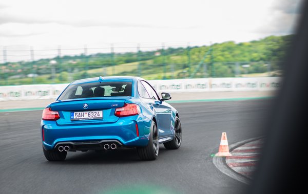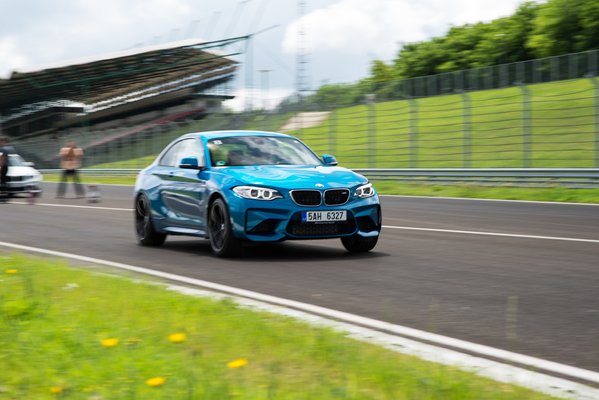 Erre most csak egészen kis lehetőségünk volt. Az instruktorok tempósan vezettek fel, kört is mértek, de ötször több idő ment el ácsorgással, vánszorgással és szervizutakon csalinkázással, mint érdemi autózással. Nem is rabolom az olvasó idejét. Ha csak azt szeretné tudni, 17,4 milliós indulóáron milyen autót kap, ha M2-es BMW-t vesz: kurva jót! Nem az jut róla az ember eszébe, hogy 1500 kiló, mert nem az a legmarkánsabb érzés, hanem hogy merev, erős, pontos és reszponzív, ami valami olyasmit jelent, hogy jó előre érezzük, ha kezd sok lenni az oldalgyorsulás, vagy bármi más, ami sok. A váltója, ez az (opcionális) duplakuplungos 7 gangos automata (M-DCT) nekem kicsit tohonya, talán nem kellett volna PDK-s Porschét vezetnem. Üres és D, hátra- és előremenet között sem egy Concorde, menet közben is néha tovább tart a kapcsolás. Ha a saját feje szerint mehet, gyors: két tizeddel hamarabb van meg neki a 0-100, mint a kézinek (4,5-4,3).