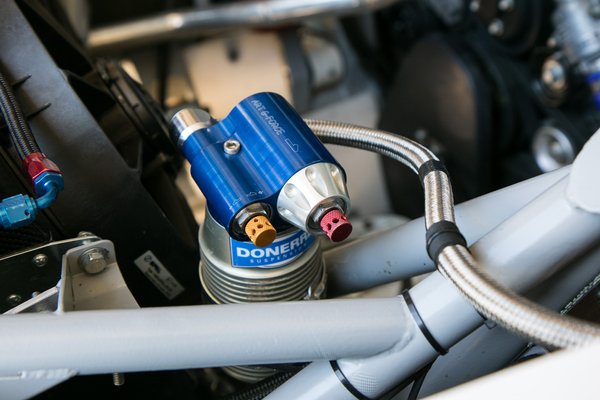Két vízhűtő van benne, egy elöl, egy hátul, ezeknek kell elvezetniük a tetemes hőmennyiséget, amit a technika termel. A motor csak a rendszer egyik eleme, a hajtás, a kormányszervó olaja hőcserélőkön keresztül adja le a hőt a hűtők felé. Így egyrészt hamarabb érik el az üzemi hőfokot, másrészt az öklömnyi olaj-víz hőcserélők sokkal strapabíróbbak, mintha mindennek külön, levegős hűtője lenne.