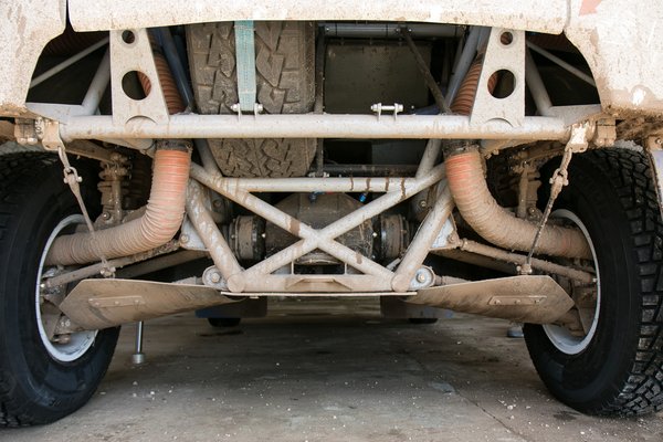 Az egyedi építést tehát úgy kell érteni, hogy kezdetben volt egy kurva hosszú cső, aztán ez lett belőle. Minden fontos paramétert előírnak a szabályok: adott a tengelytáv, stimmelnie kell a magasságnak, korlátozott a rugóút, ami az egyik legfájdalmasabb pont. A huszonöt centi, amit a kerék az alsó és felső végállás között mozoghat, nagyon rövidnek számít ilyen körülmények között, durván behatárolja a lehetőségeket, ezért mozognak olyan furcsán ezek a monstrumok.