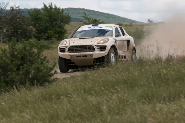 A Macanon a lámpák és az első ledcsík valóban Macan, a többi egyedi építésű. A karbonból és kevlárból hajtogatott burok alatt a valódi autó alkarnyi csövekből épül fel, minden részlete a terepralis szabálykönyv szerint készült. Prototípusnak hívják az ilyet a versenysportban, ami nem azt jelenti, hogy ebből valaha is szériaautó lesz, éppen ellenkezőleg: ebben a motoron kívül nagyon kevés alkatrész származik szériaautóból, az is legfeljebb azért, mert éppen passzolt.