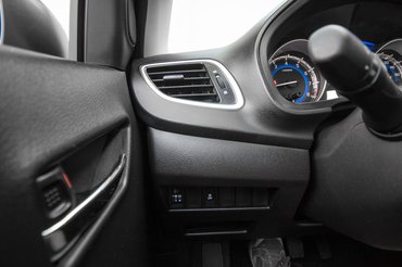 A szőnyegek, a kézifékkar markolata, a kapcsolók mind őszintén olcsó kivitelűek, látszik, hogy nem sokat foglalkoztak vele, hogyan tompíthatnák a plasztiksokkot. Ha ez az autó nem négymillióba kerülne, hanem a háromnegyedébe, azt mondanám – üsse kavics, mire lehet ennyiért számítani. De ez nagy foltokban sub-Dacia minőség (csak hogy igazoljuk néhány olvasónk feltételezését, hogy a cikkeinket a románok fizetik). Ennél a Swift azért igényesebbnek tűnik, holott a Baleno sokkal hasznosabb autó.