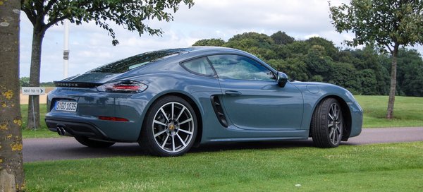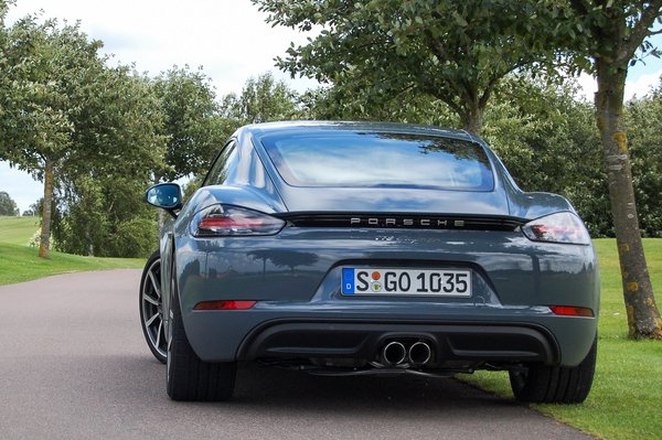 A Cayman igazi kétüléses sportkocsi, nem egy túlszteroidozott batár, nagyon jól viszi a régi 718-as könnyűségét , karcsúságát, persze a kor szellemében. Sokat elmond az is a méretekről, hogy már a 18 collos alap kerékkel is jól néz ki, 19-esnél nem kell nagyobb, de a 911-es extraként rendelhető 21-es felnijeivel úgy nézne ki, mint egy tuningversenyző a teszkós parkolóban. Mai szemmel ez egy kicsi autó, ahogy 1962-ben a 718-as is az volt. Szériában xenon első fényszórókkal jön, de felárért teljesen ledes lámpatestekkel rendelhetjük, a hátsó lámpák természetesen a 3D tervezés jegyében születtek, ahogy az most divatos.