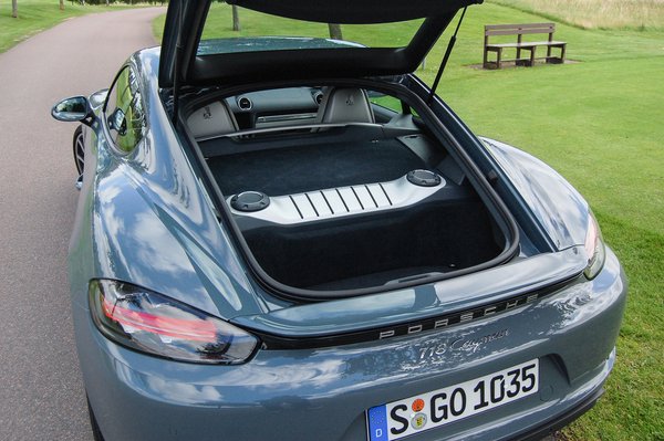 Hasonlóan a Boxsterhez, itt is két csomagtartó van, de a hátsó felett még egy óriási kalaptartó is van, ahová sok dolgot betehetünk, ellentétben a Boxsterrel, mert ezt ott a becsukott tető foglalja el. Összesen van kb. 400 liter, rosszul kihasználható csomagterünk. Azért tartom ezt lényegesnek, mert bár kétüléses, de a Cayman a hétköznapokban is nagyon jól használható autó. Pláne ha extraként megrendeljük a PASM aktív futóművet, akkor a normál és sport állás között váltogatva a Hungária körúton és a Hungaroringen is jó futóművünk lesz.