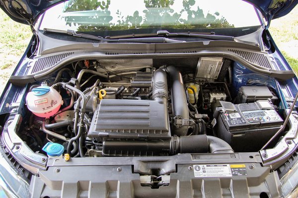 Ha benzinmotorban gondolkodunk, akkor ez a 1,2-es direkt befecskendezős turbómotor majdnem a motor paletta csúcsa. Igaz létezik 110 lovas változat is, de ez csak 90 lóerős és csak 160 Nm a nyomatéka, 175 helett. Ez egy elektronikusan butított motor, látszik is, mert a maximális teljesítménye 4400-tól már rendelkezésre áll. Mintha nyomatékgörbéről beszélnénk, annyira lapos. Ettől aztán akár jól is mehetne az autó, ha nem nyomorították volna agyon egy nagyon hosszú ötfokozatú váltóval. 130-nál alig 3000-et forog a motor, ekkor csendesen, majdnem szélzajmentesen, kevés gördülési zajjal száguld a kis Fabia. Sajnos a hosszú váltó miatt állandóan vissza kell kapcsolni hogy gyorsítsunk, de ez az ára a csendes és takarékos autópályázásnak.