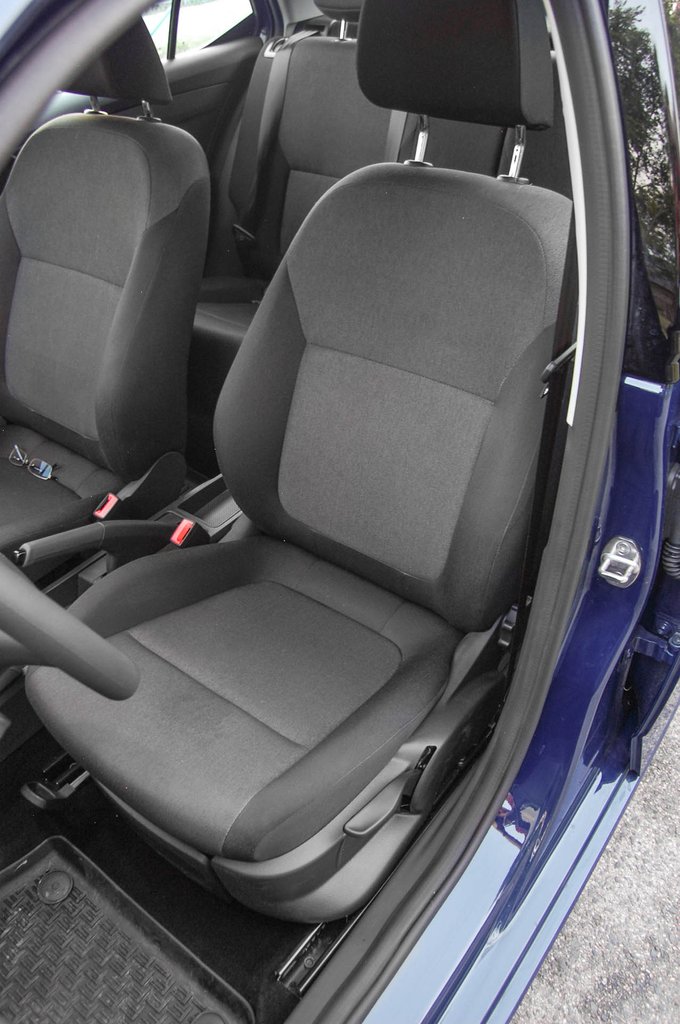 Az utastér is visszafogott a Fabia Active modellben. Az ülések egyszerűek, nem nevezném őket az ergonómia magasiskolájának. Mindenhol kemény műanyag, de legalább praktikus italtartók, kisebb rakodók állnak rendelkezésre. Viszont a minőség nem kifogásolható, minden passzol, kattan, nyílik, csukódik. Látszik, hogy nem akartak igényesebbet csinálni, nem akarták szebbre, de ami van, az nagyon jó: nincs sorja, nincs illesztési pontatlanság. A rádió is képes lenne többre, ha a jobbik szoftvert kapta volna, így hiába van USB és AUX csatlakozási lehetőség, az USB csak telefontöltésre jó, semmit nem ismer fel innen, az MP3-as lejátszást felejtsük el, a CD-n sem ismeri fel ezt a fájltípust.