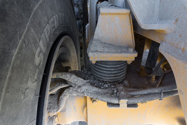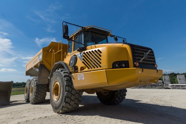 A Hödlbeton telepén két ilyen dömper is dolgozik, érdekességük, hogy ezek úgynevezett ízelt teherautók. Ez azt jelenti, hogy az alváz nem merev elem, hanem a billencs és a fülke közé csukló került. Az elv ugyanaz, mint a Rába Steigernél vagy a Doosan Moxynál, vagyis az ízületen keresztül valósul meg a kormányzás: oldalanként egy, jó felkar vastagságú hidraulikus munkahenger fordítja a csuklót, így a kerekek kanyarodás közben ugyanazon a nyomon futnak, ami terepen komoly előny.