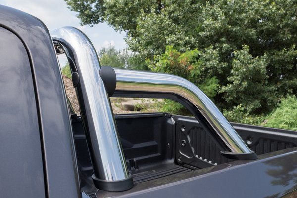 A raktérben lévő kamu bukócső is arra utal, hogy nem a málhás szamár szerepet szánják a modellnek, hiszen a néhány lemezbe tekert csavarral rögzített krómcső nem sok bukástól védené az utasteret. Hosszabb gerendákat és vascsöveket se szívesen raknék rájuk, tartófülek hiányában akadálymentesen csúszkálhatnak jobbra-balra, a krómfelületnek se tesz jót. Pedig a rakteret dicséretesen kibélelték, ráadásul a felépítményezőknek is kedveznek azzal, hogy a pótféklámpát nem kell kivezetni sehová, mert a platóajtóba van építve. Igaz, itt könnyebben megsérülhet.