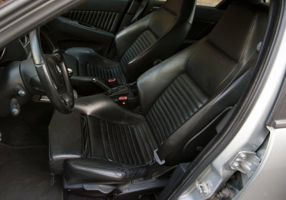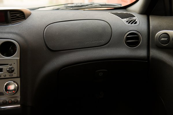 Van összehasonlítási alapom, mert a saját autóm bőrülésére magam választottam egy konkrét tehénbőrt, és sokat ültem a Cougar viniljében is. Hiszik vagy sem, az Alfáé sokkal közelebb van a műanyaghoz. Cserébe a klíma hibátlan, és a beltér is meglepően jó állapotú, főleg, hogy mint megtudom, az autó egész életében a szabadban parkolt. A 2002-es rücsis műanyag, amivel a műszerfalat borították, és amelyről egyikünk sem hitte el, hogy tartós lehet, hiszen addigra az Alfa rég felélte már a tartóssági kreditet, szóval a fekete borítás a szélvédő alatt kifogástalan. Nevetni csak azon lehet, hogy az utaslégzsák borítása alul hogyan kunkorodik felfelé a sarkoknál, de az állítólag az összes 156-osnál ilyen.