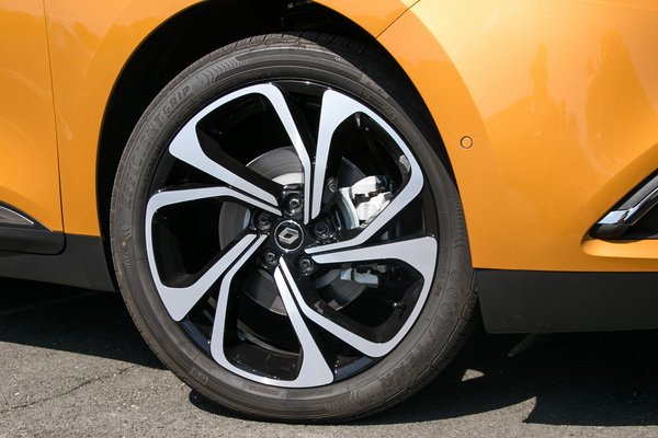 Keskeny és viszonylag ballonos a 195/55 R20-as gumiméret, külső névleges átmérője 723 mm, ami bőven túlméretesnek számít személyautók között, ezért nehéz lesz jó magyar módra spórolásból kisebbre cserélni, márpedig a Scenic-et kizárólag ezzel lehet majd kapni. A felni súlya 13 kg, ami az extrém mérethez képest nem sok – egy átlagos 17-es is nyom ennyit. A Renault három gumigyártóval, a Goodyearrel, a Michelinnel és a Continentallal állapodott meg a spéci méret gyártásáról, jelenleg egy garnitúra ára bő 160 ezer forint.