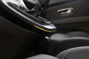 A fülke a Mégane, Talisman után már ismerős, nem tudnám megmondani, van-e különbség a műszerfal főbb egységei között. Dominál a középső tablet, amely az olcsóbb változatokban nem feltétlenül így néz ki, de a hosszú hajlított lemez, amely terpeszkedve kicsit vágja a térdet, jár hozzá. Ötletes az ülések között előre-hátra tologatható doboz, amely elöl pohártartó, felül könyöklő, középen rekesz, hátul fiók. Igazi hóbortos, franciás megoldás, viszont kifogástalan a kivitelezés, szépen siklik, csukódik, nyílik, minőségi tárgy.