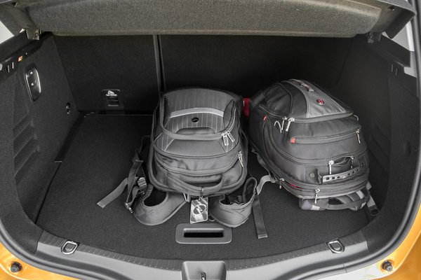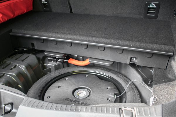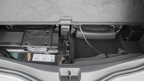 A csomagtartó bő ötszáz literes, el lehet férni benne, de semmi extra. Az űrtartalom úgy jön ki, hogy a magasra emelt padló alatt még két szint van, ahová ezt-azt el lehet rejteni, ezért tűnik alaphelyzetben valamivel kisebbnek. Aranyos extra az elektromosan, gombnyomásra lehajtható hátsó üléstámla, de felhajtani itt is kézzel kell, így aztán nem sokat nyerünk vele.