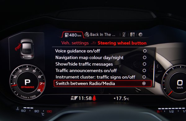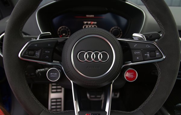 Fuh, két-három kanyar után nagyjából megvan minden, ami lényeges. A váltófülek lehetnének nagyobbak, de megszokhatóak, együtt fordulnak a kormánnyal, amelyre rákerült R8-módon az indítógomb és az üzemmódválasztó Drive Select gomb is. Külön kiemelném – és követendő példaként állítanám mindenki elé, aki eddig esetleg nem csinálta volna – a gombot a kormányom, amelyre bármit ráprogramozhatunk ill. beállíthatjuk, hogy mi történjen, ha megnyomjuk. A személyre szabhatóság sosem volt még ilyen könnyű.