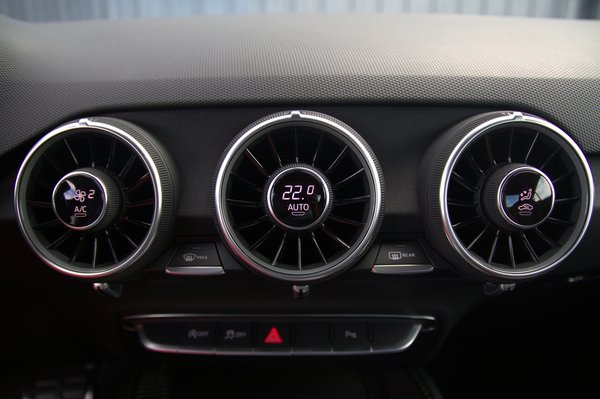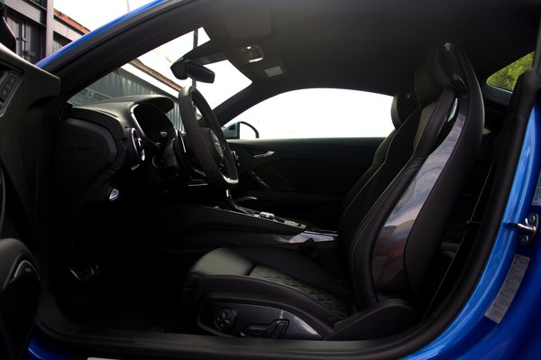 Amiről azonnal ki lehet szúrni, ha egy sportos autót komolyan vesznek, az maga a funkcionalitás. Az első lökhárítón minden levegőbelépő valódi, nem csak céltalan plasztik az optikai csomagos dízelen. Kap levegőt minden, amit hűteni kell: a fékek, az intercooler, a vízhűtő és a két kis olajhűtő is, a hátsó szárnyat sem a lepkék hordták oda, hiszen fix, a padlólemez is burkolt, amennyire csak lehet és a TT S-hez képest egy centivel lejjebb ültették.