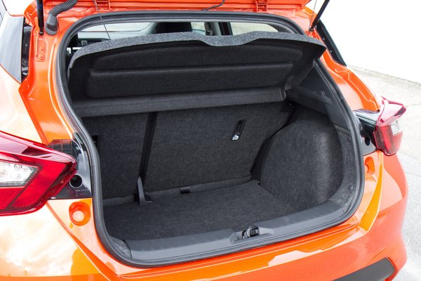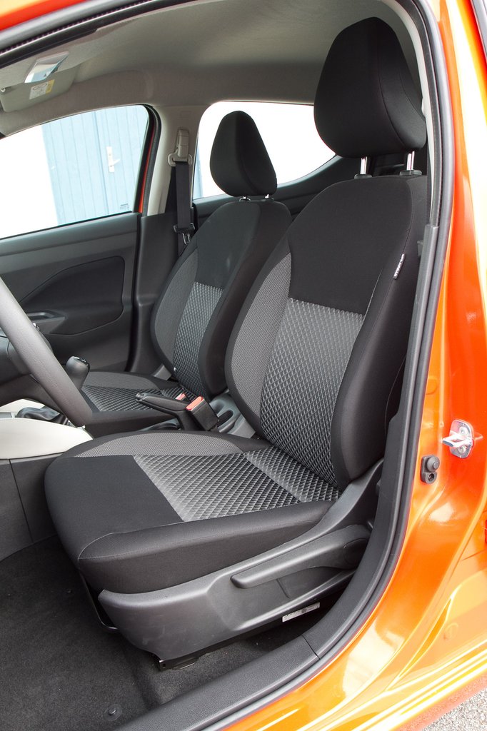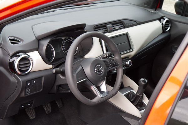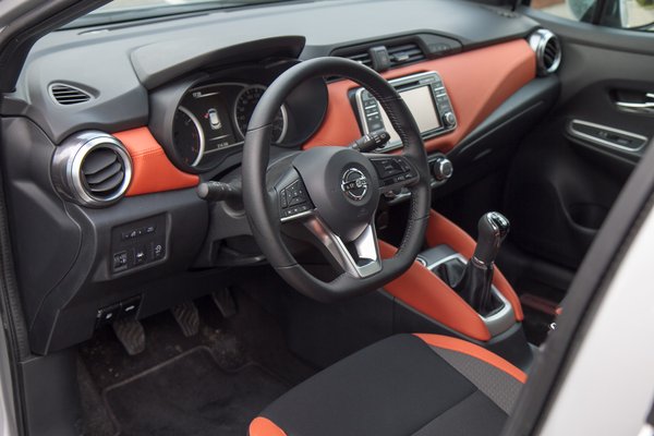 Látszik az igyekezet, hogy a kardánbox oldalán varrott műbőr párnázattal, meg a műszerfal közepére biggyesztett betéttel tereljék el a figyelmet az egészről, sőt, a műszerfal teteje puha tapintású, ez egész szép felszínű, de az összkép vegyes. Egy jobb kivitelű (N-Connecta) változat már normálisabban és vidámabban nézett ki, fém kilinccsel, színes betétekkel az üléseken, de padlót ettől nem fognék, még akkor sem, ha az új Micra fényévekkel minőségibb az előző, indiai gyártású Micránál. Európában azonban nem ez a referencia, hanem mondjuk a Polo, Fabia, Corsa. És megint csak visszautalnék a Sway belsejére, aminek ehhez semmi, de semmi köze nincs. Nagy kár.