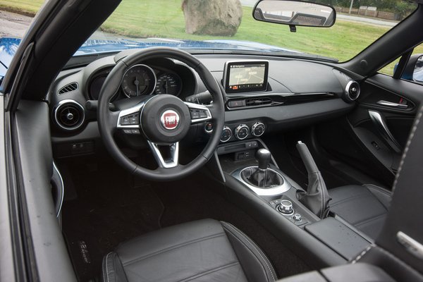 Kint viszont tobzódunk a régi 124-es jegyeiben, amiket itt valahogy sokkal hitelesebben, kevésbé szájbarágósan, finomabban sikerült előhívni, mint a Beetle-nél a Bogár-rokonságot, vagy a Mininél az Austin 7 őst. Annyira visszafogott az egész retro-stílus, hogy aki nem ismeri a régi 124 Spidert, talán észre se veszi, hogy egy ötvenéves formajegyekkel felruházott autót lát – totál vadonatújnak hiszi. Aki meg ismeri, annak sincs az arcába tolva a dolog. Ez így van rendjén.