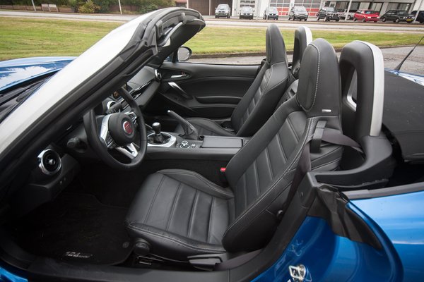 Nem mintha baj lenne, mert ez az autó otthonosan érzi magát a Mazda-bőrben. A Fiatnál ügyesen alakították át az MX-5 vonalait, rá se lehet ismerni a japán eredetire – amíg az utastérbe nem pillantunk, mert ott a kürtgombot leszámítva nagyjából minden echt Mazda maradt - kicsit mások az ajtópanelek, kerek a váltógomb, egy másik betét van a műszerfalban, de tényleg egymás mellett kell állnia a két kocsinak, hogy ez észrevehető legyen.