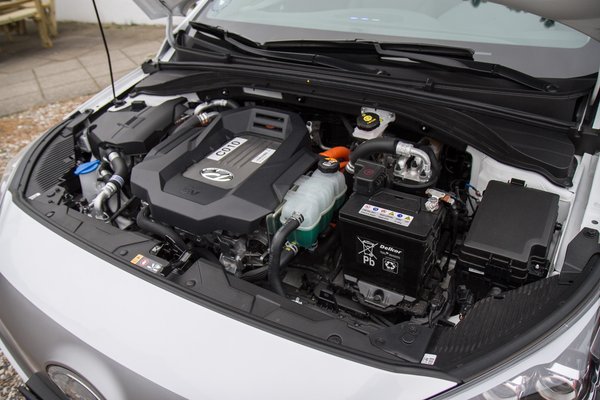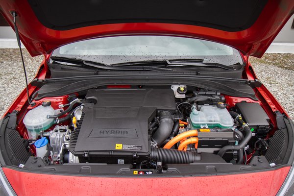 A Hyundai késve szállt be a hibrid-villany buliba, de ennek van pozitívuma is: mivel minden új terület rejteget csapdákat, a Hyundai megnézhette, merre vannak a legnagyobb aknák. Az első, és legfontosabb a fura vezetési élmény, amit a hibridnél egyszerűen oldottak meg: a sebességváltónak valódi fokozatai vannak, egy dupla kuplungos váltó hat fokozaton zongorázik. A hagyományos motor egy benzines, közvetlen befecskendezéses 1.6 GDI, amely a teljesítményéből kiindulva (105 LE, 147 Nm) valószínűleg a takarékos Atkinson-ciklus szerint dolgozik, a hatásfoka eléri a 40 százalékot. A sima hibrid villanymotorja 32 kilowattos (44 LE), de ez nem adható hozzá egy az egyben a benzinmotor lovaihoz: összességében a rendszer 141 lóerős.