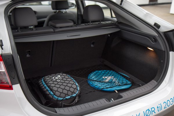 Az elektromos változat annyiban különbözik a hibridtől, hogy nincs előválasztó karja, hanem nyomógombokkal lehet választani az előre- és a hátramenet, illetve a parkoló állás között, mint valami Ikaruson. Kisebb a csomagtartója is, az alap 440 literből 330 maradt, hiszen itt sokkal több akkunak kell a hely, és ezeket a csomagtér alá tették. És mellesleg lazán legyorsulja a hibridet, majdnem egy másodpercet ver rá százig.