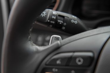 Egy teljesen elektromos járműnél arra persze fel kell készülni, hogy a fűtés és a klímázás alapjaiban tudja felforgatni a hatósugárról gondolt dolgokat. Az elektromos Ioniq fűtéséről alaphelyzetben normál ellenállásfűtés gondoskodik, ami nem a legtakarékosabb megoldás. Opcióként hőszivattyús fűtés is létezik, ez hatékonyabb, de ez nincs a magyar árlistán. Update: az importőr jelezte, hogy időközben a hőszivattyús fűtés is megjelent az extralistán, ez akkumelegítő berendezéssel együtt 395 ezer Ft. Ezekkel lesz az Ioniq hivatalos hatósugara 280 km, azaz a takarékosabb fűtőrendszerrel 30 km-t nyerhet az ember. A klímázáshoz azt a módszert találták ki, hogy van egy Driver only gomb, ezt megnyomva csak a bal egyre fújja a hideget.