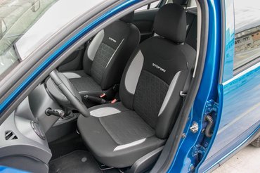 Mindez igénytelenségre vall, de enyhe képzavarral mondhatjuk: ez az ára, hogy olcsón juthatunk új autóhoz. A kihúzhatatlan kormány és a botrányos ülés ellenben megbocsáthatatlan. Nem tartom kizártnak, hogy létezik ember, aki normális pózban tudja vezetni, és kényelmesnek találja a széket, de biztos vagyok, hogy a többség nem. Átlagos európai férfialkatommal még egy félórás városi utat is kínnak éltem meg benne, pedig nagyon kevés autóban panaszkodom az ülésre. Komolyan gondolkodtam rajta, hogy kispárnát tömök a derekam mögé, annyira belegörnyedtem a fotelbe, a kormány pedig oly messzi távolban van, hogy muszáj a kuplungpedálhoz viszonyított ideálisnál közel tíz centivel közelebb húzni az ülést, ami viszont kellemetlen térdhajlásszöget ad ki.