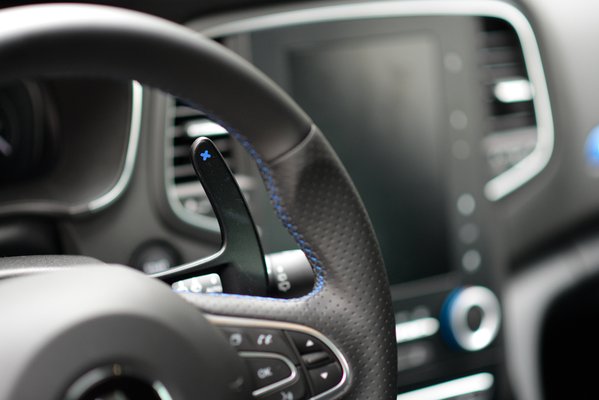 GT kivitel ide vagy oda, ez a Mégane nem igazi sportkombi. A /40-es gumik csak feleslegesen ráznak minket, és verik szét a futóművet. Jól mozog, nem mondom, de a szokásos tuningomat, a 16 colos vasfelniket erre is ráadnám, úgy képzelem, hasonlóan új életre kelne tőle, mint a Mercedes CLA. Kapcsolgathatjuk a Multi Sense fantázianéven futó üzemmódválasztót, vajon érezni-e különbséget a futóművön sport és comfort állásban. Nem is tudom, hányadszor szopom ezt be, hogy hosszasan tanulmányozom a rendszert, és csak utána olvasom el az apró betűs részt. A kis ötágú valamit ábrázoló kapcsolóval csak élénkebb gázreakciókat, és a fordulatszámot magasabban tartó váltót kapunk.