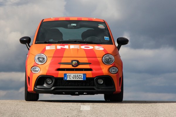 Az autó teljes neve, Fiat 500 Abarth 595 Competizione. Az 595 utalás az ős 500 Abarth motorjának lökettérfogatára, a competizione pedig versenyt jelent. Az autó eredeti színe piros volt, ez a mostani reklám csak fólia. Az autón kívülről a nagy Abarth-lökhárítók tűnnek fel, a nagy kerekek, a nagy kerekekben nagy piros Brembo-féknyergek, és mindenhol 595 vagy Abarth jelek vannak, de még az olajbeöntő nyílás kupakjára is jutott egy skorpió. A normál 500-asokkal ellentétben itt nem króm, hanem matt antracit kilincsek vannak az ajtókon, amik majd el fognak törni, mert az 500-as kilincs eltörik. Én már az asszony mindkét 500-asán cseréltem egyet-egyet.